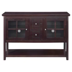 Showcase your books, magazines, media and more with the Frame Metal and Wood Media Bookshelf from Saracina Home. The combination of faux wood and metal creates texture and personality that will still complement any style of decor. Consider this three-shelf console table with storage to organize cluttered living and family areas.