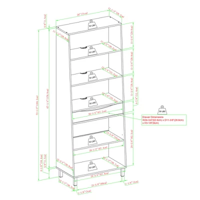 72.5″ Mid-Century Modern 1 Drawer Angled Bookshelf – Saracina Home