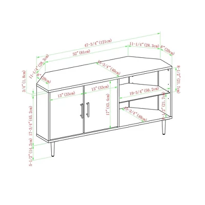Make the best of any corner space with Saracina Home’s Contemporary Corner Fit 52” TV Stand. Chic, tempered glass shelves are available to hold all your best home decor, whether it’s media components or cute houseplants. A combo of closed and open storage gives you privacy as well as the opportunity to show off your favorite display goodies. Even try out this TV stand as a kitchen buffet or office sideboard!