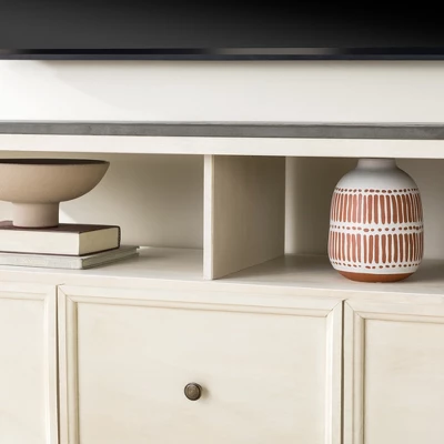 Farmhouse 3 Drawer Wood TV Stand For TVs Up To 65″ – Saracina Home