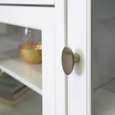 Display your entertaining space in style with this highboy media stand. Its four storage cabinets provide ample storage space to house your favorite movies, components, and game consoles. Features adjustable shelving behind glass-pane doors and a built in cable management system. Crafted from high-grade MDF and tempered safety glass, this stand will accommodate most flat-panel TVs up to 55 inches.