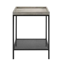 Rosalyn Urban Industrial Glam Square Tray Side Table With Metal Mesh Shelf Gray Wash – Saracina Home